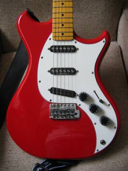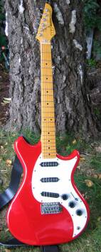 Solid Alder body, one piece Maple neck and fingerboard, bone nut.