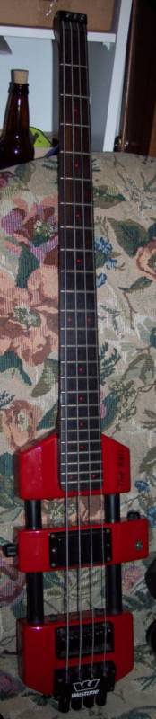his '84 black and '85 red Rail basses, and pictures of his red Rail bass
