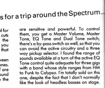 Note the bad typesetting - the first paragraph in the middle column should be further down,at the end of the Spectrum GT bass review